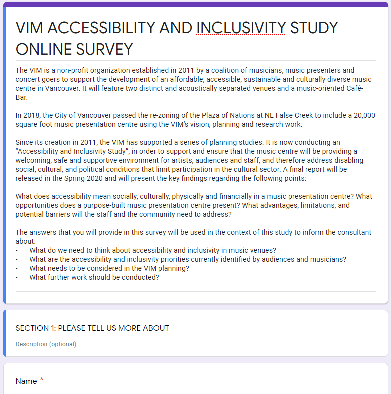 Please take the VIM survey on Accessibility and Inclusivity in Music Venues: